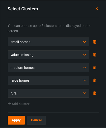With the Cluster Insights visualization, you can understand and name each cluster in a dataset. Use clustering to capture a latent feature in your data, to surface and communicate actionable insights quickly, or to identify segments in the data for further modeling.