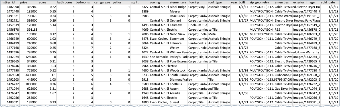 The following sections show the visualization tools used to investigate cluster features. The sample dataset contains features representing housing data: