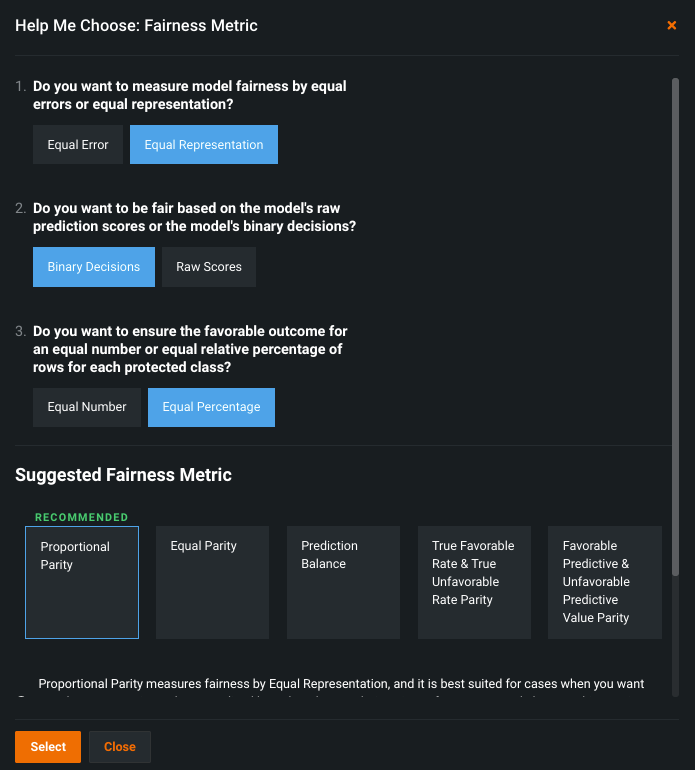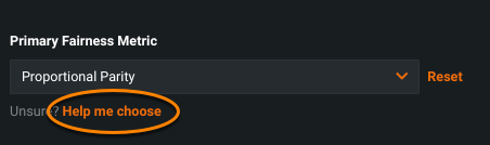 Click Select to add the highlighted option to the Primary Fairness Metric field.