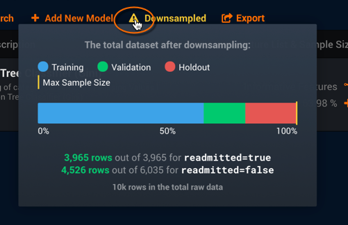 Smart downsampling is a technique to reduce total dataset size by reducing the size of the majority class, enabling you to build models faster without sacrificing accuracy. When enabled, all analysis and model building is based on the new dataset size after smart downsampling.