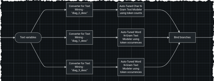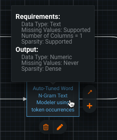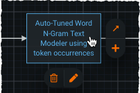 • Boosting input: A node that supplies the prediction to boost (eXtreme Gradient Boosted Trees Classifier with Early stopping in the example) and other tasks that pass extra variables of the booster (Matrix of word-grams occurrences).