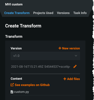 | Additional files | Other files used by the task (for example, a file that defines helper functions used inside custom.py). |