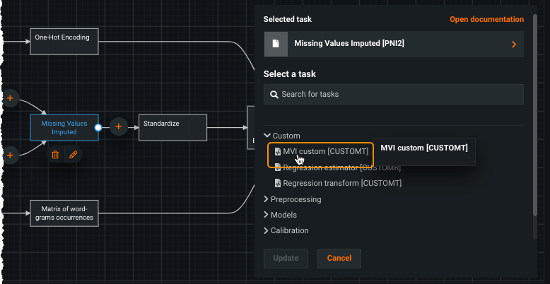 In the task window, click on the task name to replace it. Under Custom, select the task you created. Click Update.