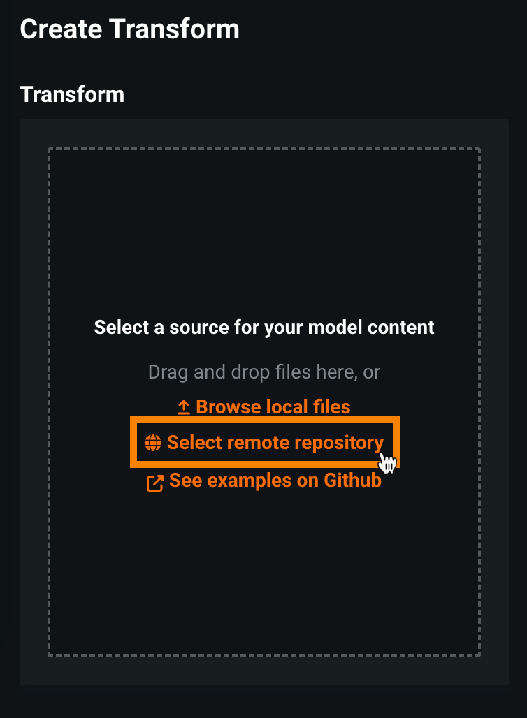 Under Create Transform, in the Transform group box, click Select remote repository.