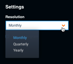 Set the chart's granularity. The resolution options are auto-detected by DataRobot. All project types allow you to set a resolution (this option is under Additional settings for multiseries projects).
