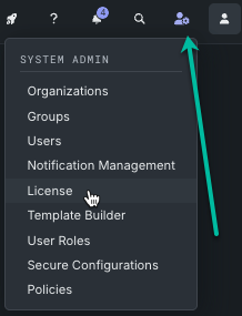 Click the admin icon, located to the left of your user icon, and select Seat License