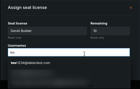In the Usernames field, specify the users to be assigned seats for the selected license type.