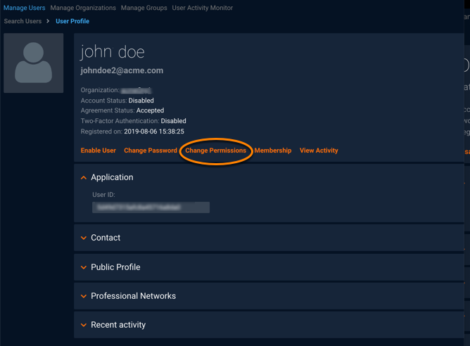 You can also change user account access from Users > User Profile by clicking Enable User or Disable User.