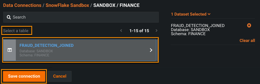 For Prediction source, select Snowflake as the Source type and click + Select connection.