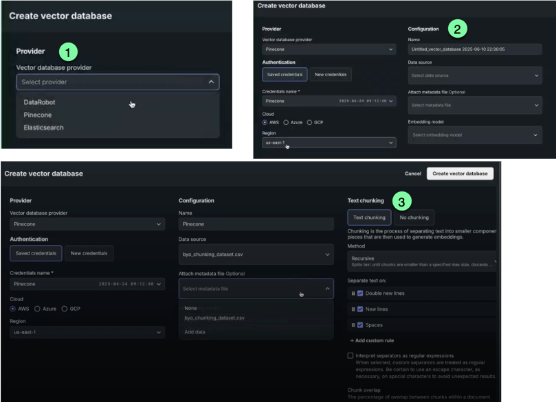 With DataRobot GenAI capabilities, you can generate text content using a variety of pre-trained large language models (LLMs). Additionally, you can tailor the content to your data by building vector databases and leveraging them in the LLM blueprints. The DataRobot GenAI offering builds off of DataRobot's predictive AI experience to provide confidence scores and enable you to bring your favorite libraries, choose your LLMs, and integrate third-party tools. Via a hosted notebook or DataRobot’s UI, embed or deploy AI wherever it will drive value for your business and leverage built-in governance for each asset in the pipeline. Through the DataRobot UI you can: