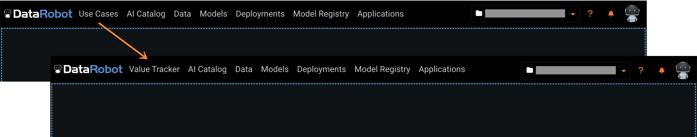 With this release, the Use Cases tab at the top of the DataRobot is now the Value Tracker. While the functionality remains the same, all instances of “use cases” in this feature have been replaced by “value tracker.”
