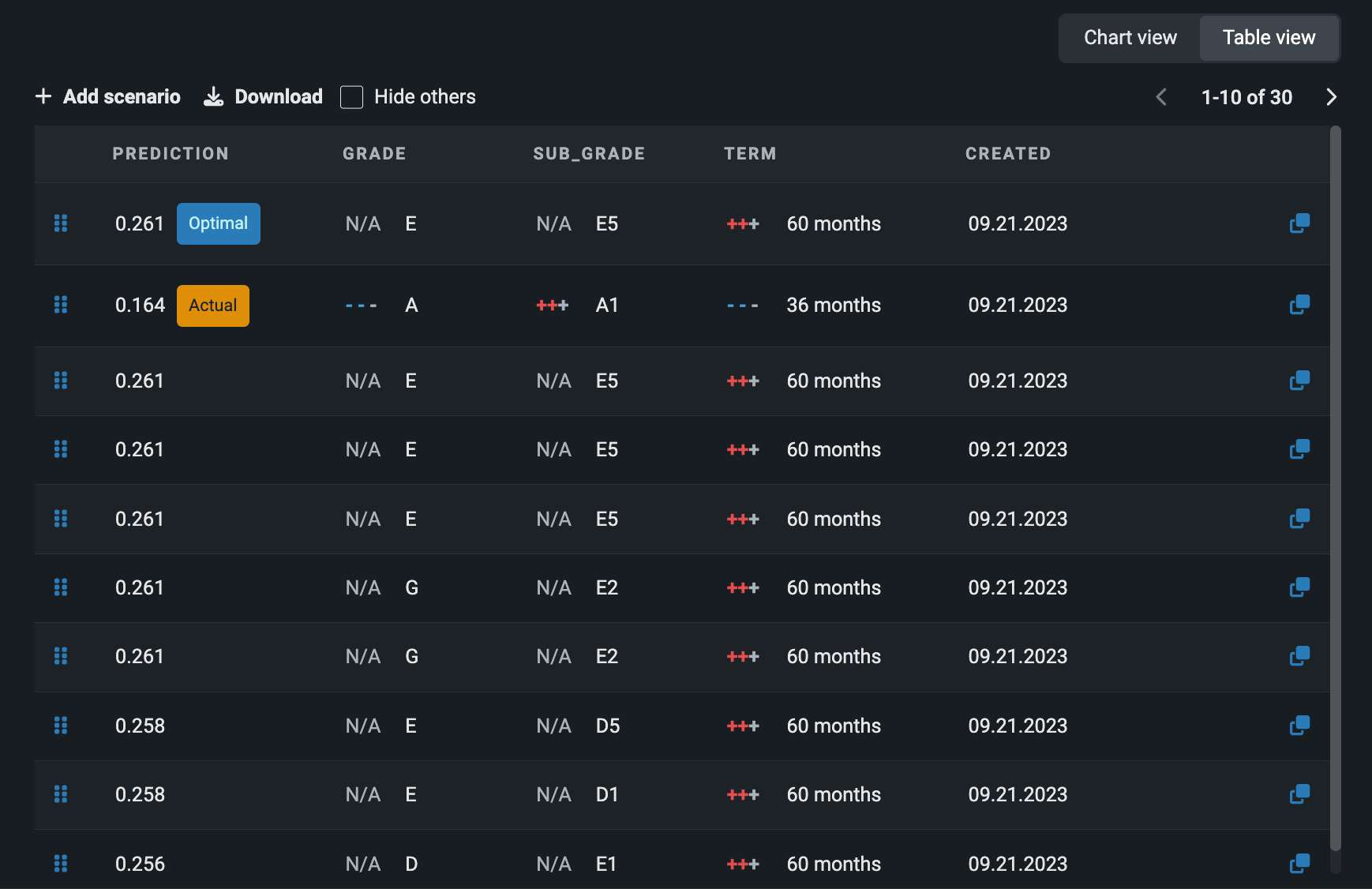 In the new Workbench app experience, you can now interact with prediction results using the what-if and optimizer widget, which provides both a scenario comparison and optimizer tool.