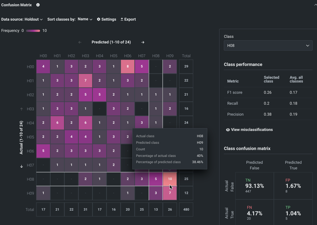 Once a model is built, a multiclass confusion matrix helps to visualize where the model is, perhaps, mislabeling one class as another.