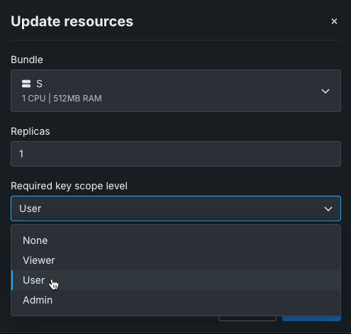 | Deploy latest version | Deploy the latest version of the vector database to the selected prediction environment. |