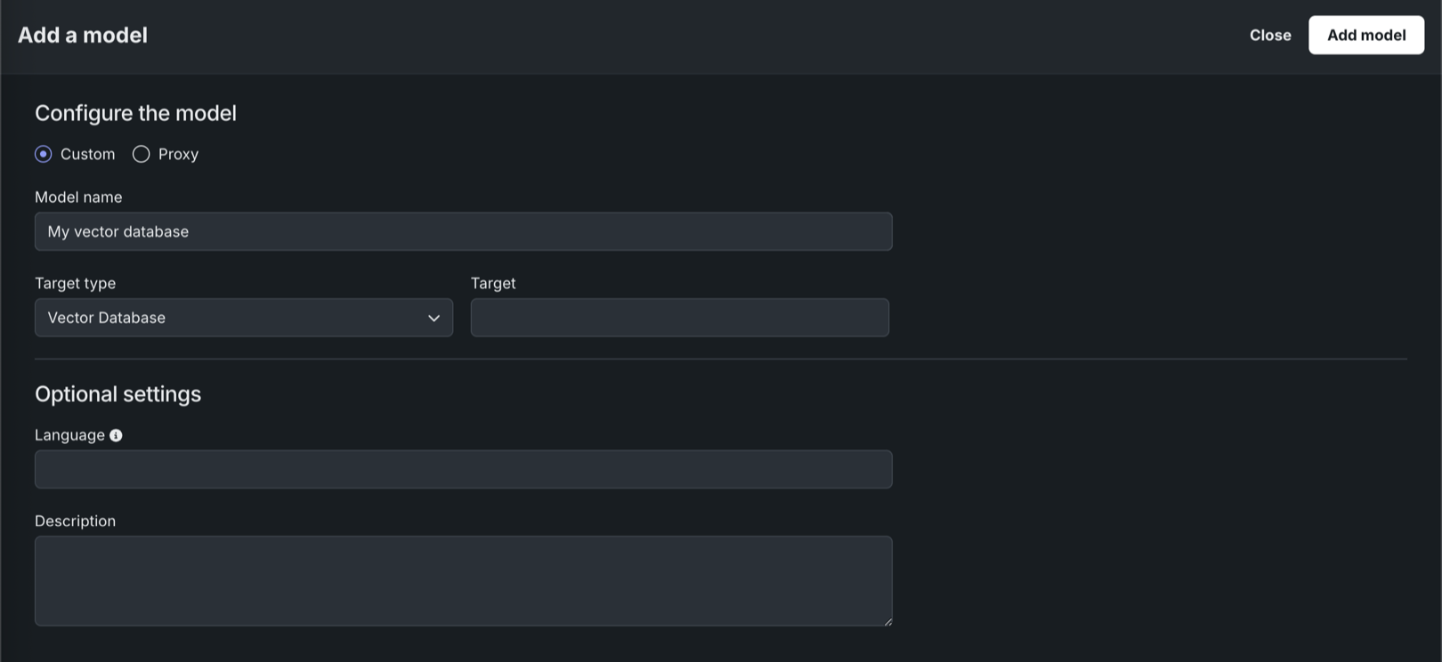 In Registry, with the vector database target type in the model workshop, you can register and deploy vector databases, as you would any other custom model.