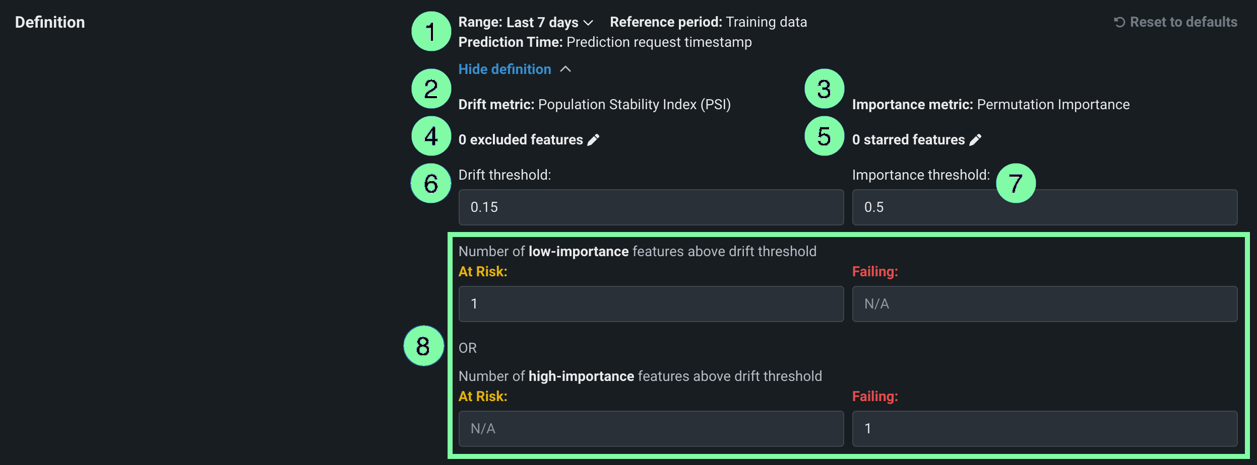 8 "At Risk" / "Failing" thresholds Configures the values that trigger drift statuses for "At Risk" () and "Failing" ().
