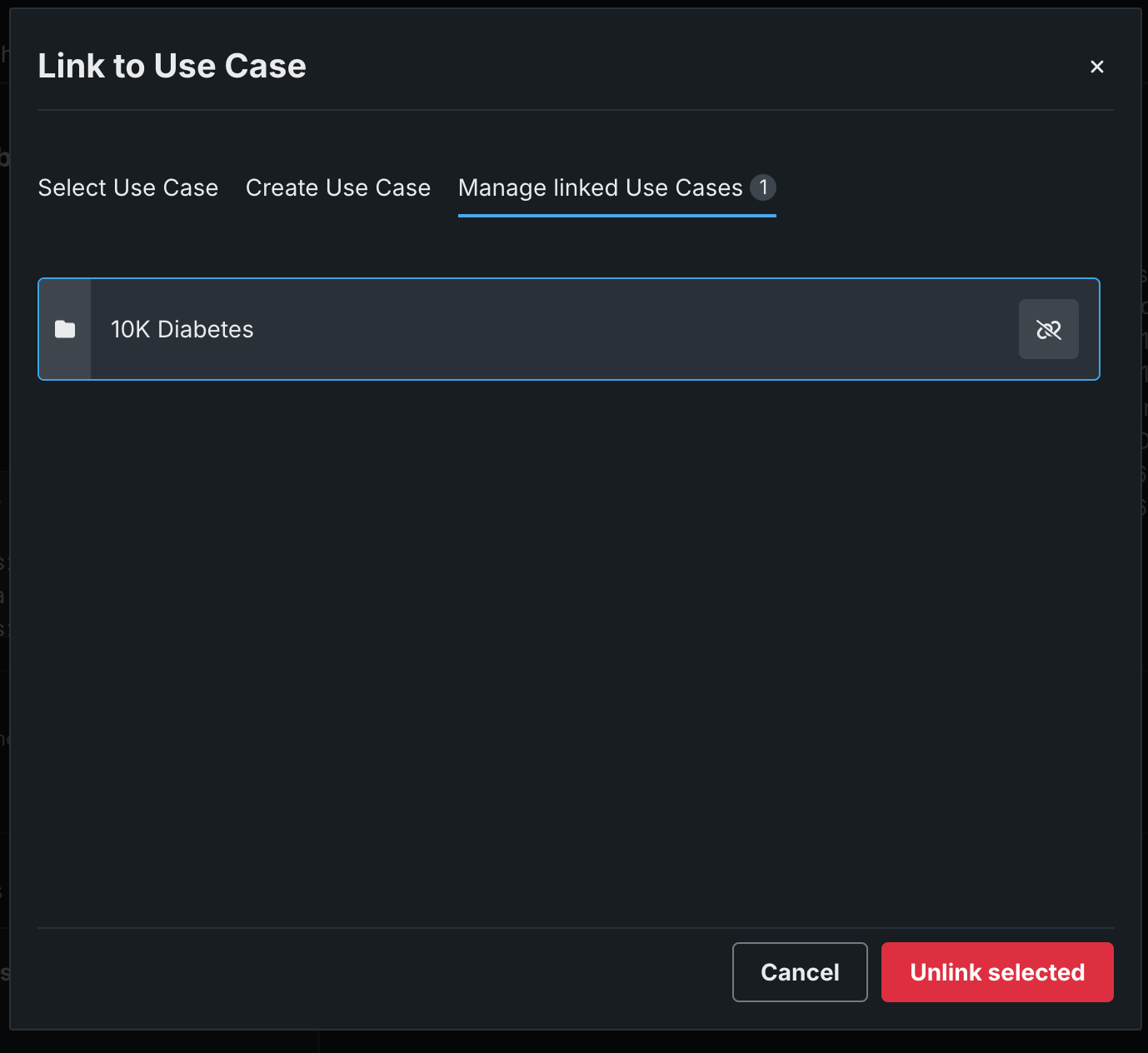 Click the dropdown to view a list of available Use Cases and select the Use Case you want to add the dataset to. Then, click Link to Use Case. When you link data to a Use Case that has other members, that data will also be added to their Data Registry.