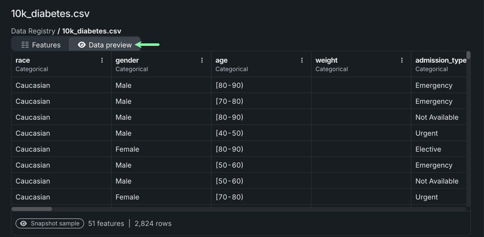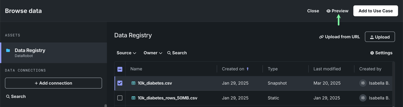 (Optional) Preview the dataset to determine if the dataset is appropriate for the objective of your Use Case by clicking Preview.