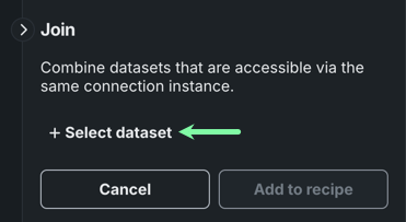 Click + Select dataset to browse and select a dataset from your connection instance.
