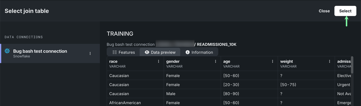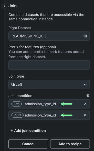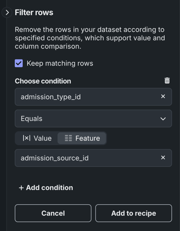 admission_type_idequalsadmission_source_id, DataRobot only returns rows where the value ofadmission_type_idis the same as the value ofadmission_source_id.