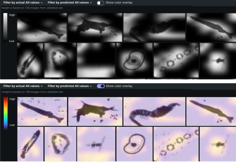 | 2 | Show color overlay | Sets whether to set the display to show only what the model deemed "important" for predictions or whether to show the important area in context of the whole image. See Color overlay for details. |
