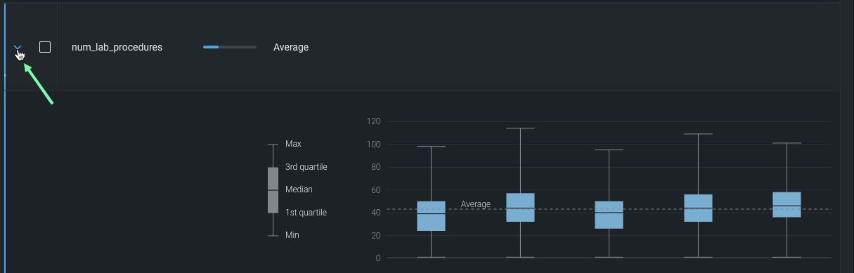 Expand a row to see additional features or statistics, depending on feature type, within a cluster.