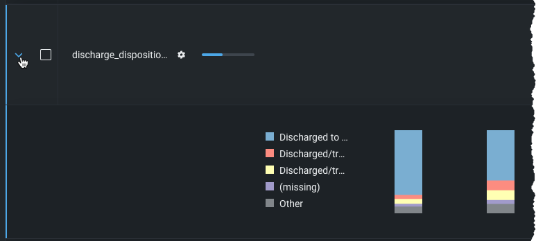 For categorical features, see a histogram showing the top four features and all others bucketed into Other: