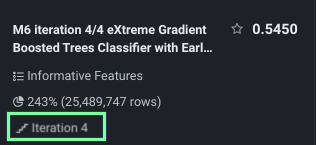 The active iteration—the iteration of the model that has the highest accuracy—is the basis for other Leaderboard insights and is used for making predictions. As a result, the Leaderboard for an IL experiment does not show all models; instead, it shows a representative of each model. As training continues, the best model is assigned as the active model at the end of each iterative round.