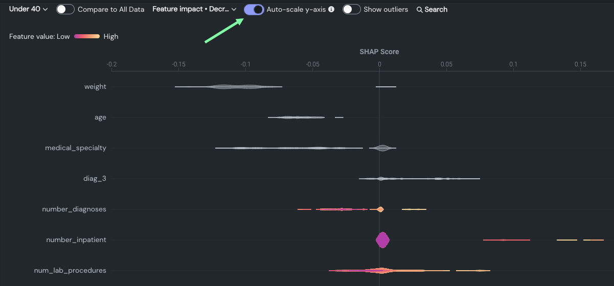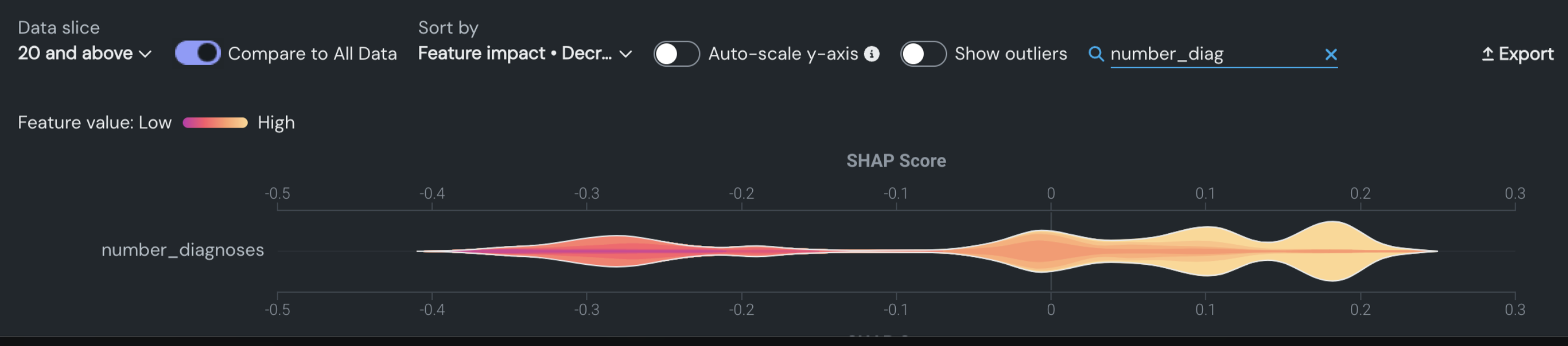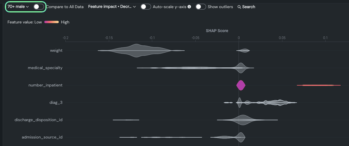 | Compare to All Data | Show the feature's impact for a subpopulation (slice). Results are overlaid with the impact when the full population is considered. | Predictive |