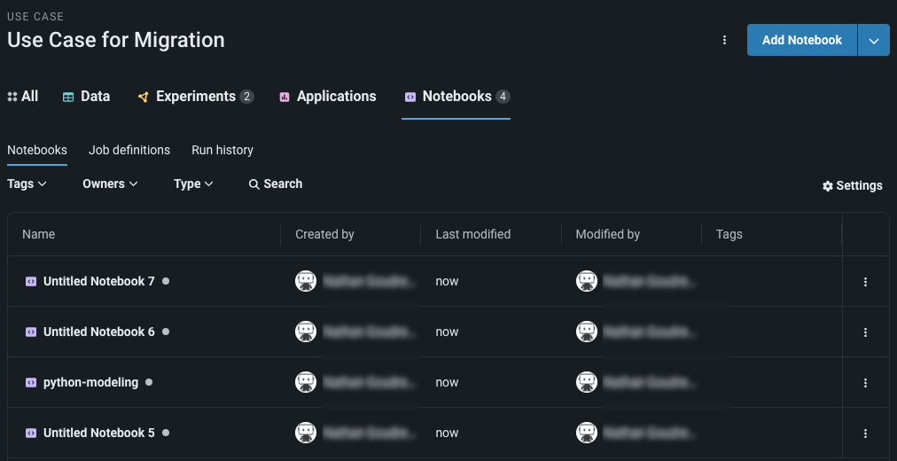 Navigate to the Notebooks page and determine the notebook(s) you want to migrate.