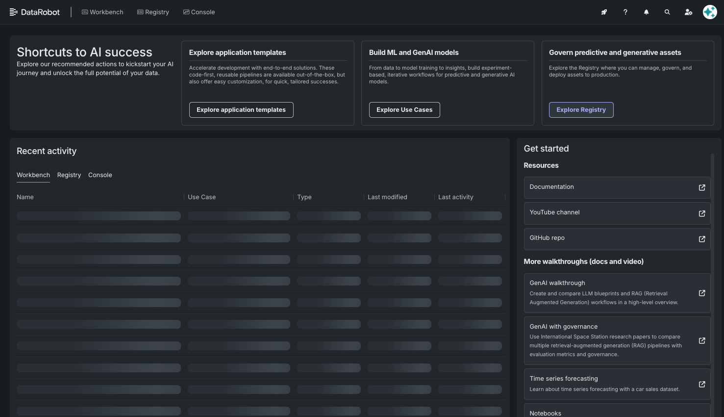 Log in to DataRobot; you will land on the home page.
