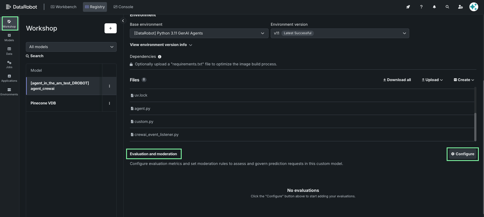 Send the agent to the Registry's workshop in preparation for deployment and monitoring.
