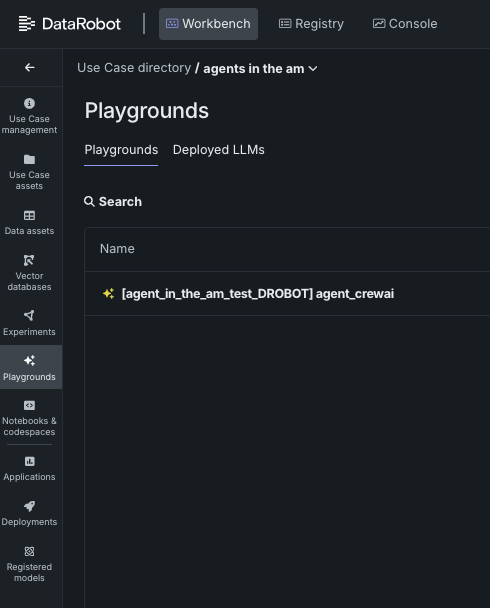 Congratulations—you now have a working agent. Feel free to leave the platform; the codespace will terminate by itself. Find your agent at any time in the Workbench Playgrounds tile.