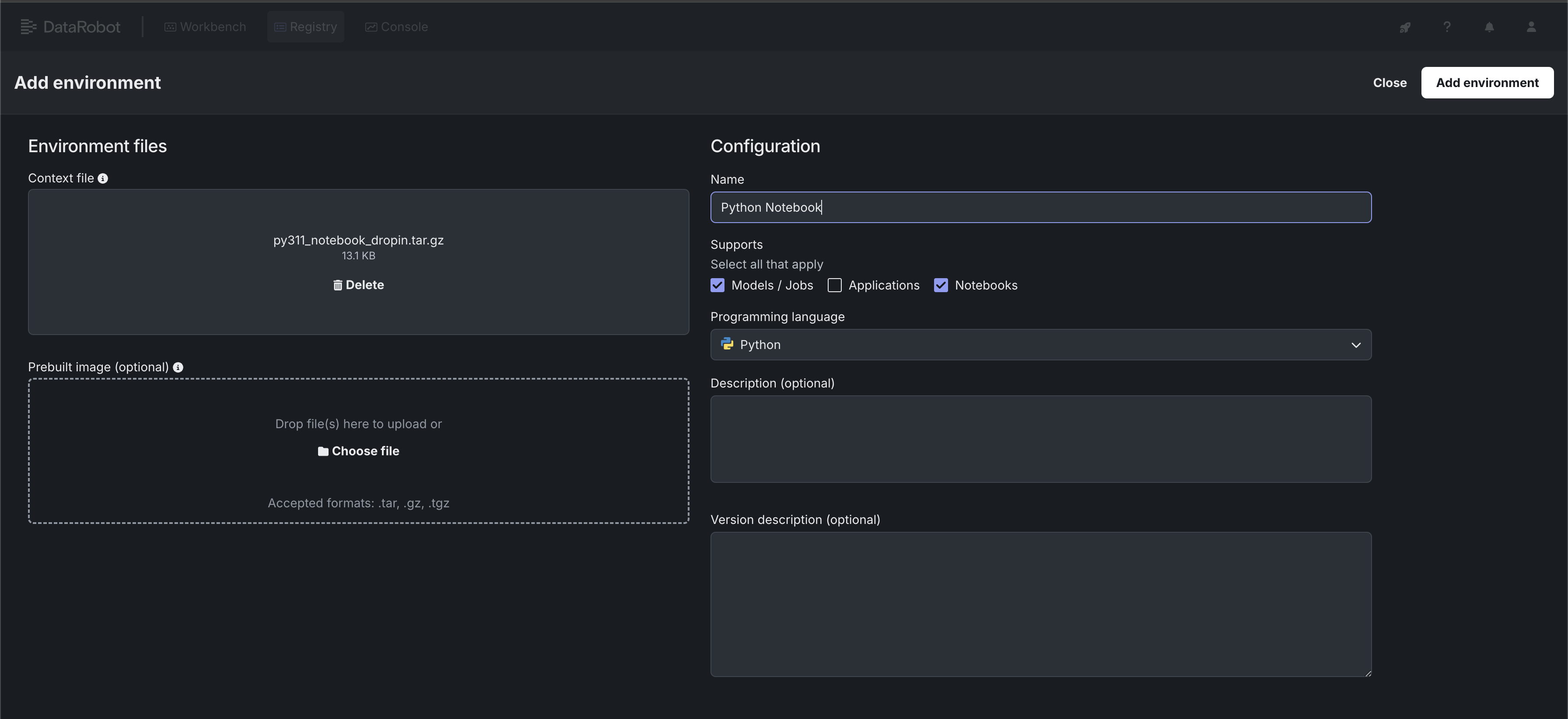 Hosted data science notebooks where users can execute DataRobot API and other custom code-first workflows. Notebooks are Jupyter compatible and provide centralized governance, enterprise-grade security, and reproducibility for data science teams to collaborate across the code development experience.