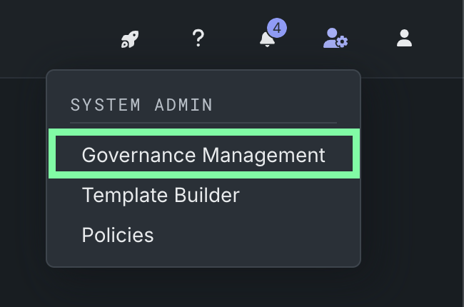 In the Classic UI, click the user icon and then, in the App Admin section, click Governance Management.