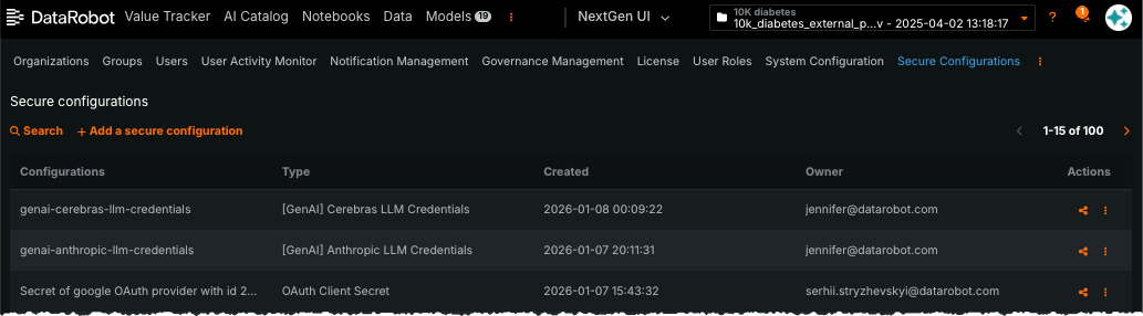 After installation is complete, provide model credentials to DataRobot from the Secure Configuration page: