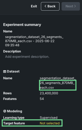For static (or snapshotted) datasets, you can now begin experiment setup once EDA1 completes; the experiment summary populates almost immediately. Previously, because the first chunk was used as the data to start the project, it could take a long time to create the first chunk (depending on the size of the dataset). The EDA sample is a good representation of the full dataset and using it allows moving forward with setup, speeding experimentation. It also provides more efficiency and flexibility in iterating to find the most appropriate configuration before committing to applying settings to the full dataset.