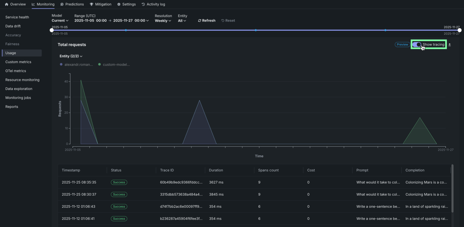 Tracing is a premium feature. Contact your DataRobot representative or administrator for information on enabling this feature.