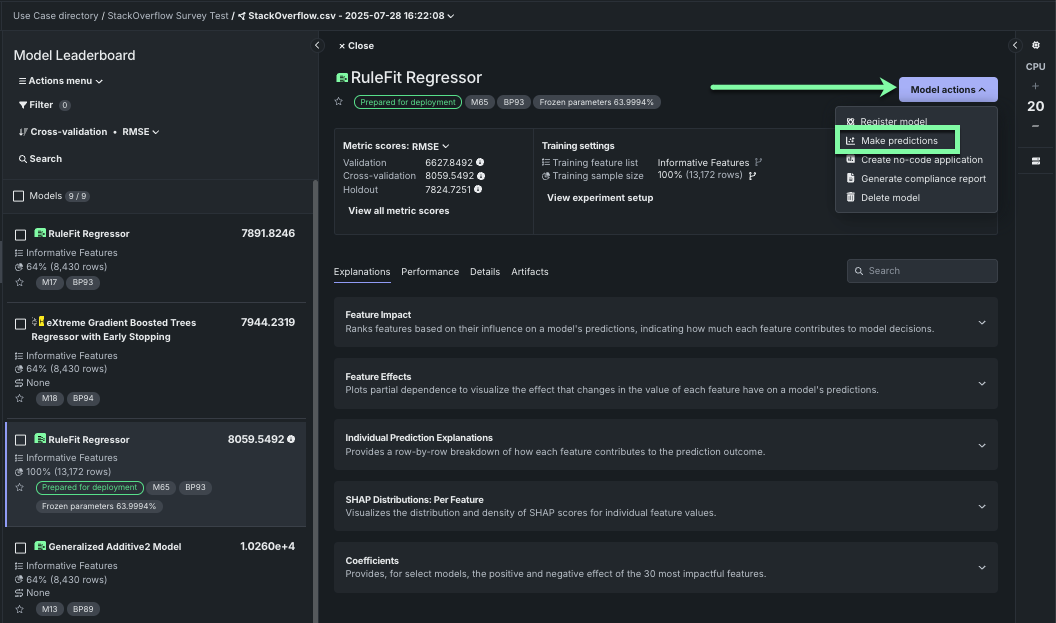 Click Model actions > Make predictions.