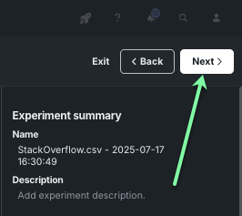 In the Set up new experiment window, specify