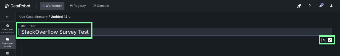 Click + Create Use Case. Enter a name for the Use Case and click the checkmark.