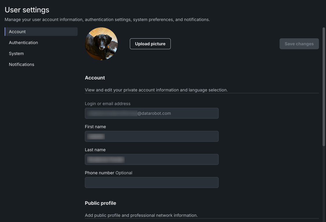 DataRobotアカウント情報に変更を加えるには、以下のいずれかのフィールドを編集し、変更を保存をクリックします。