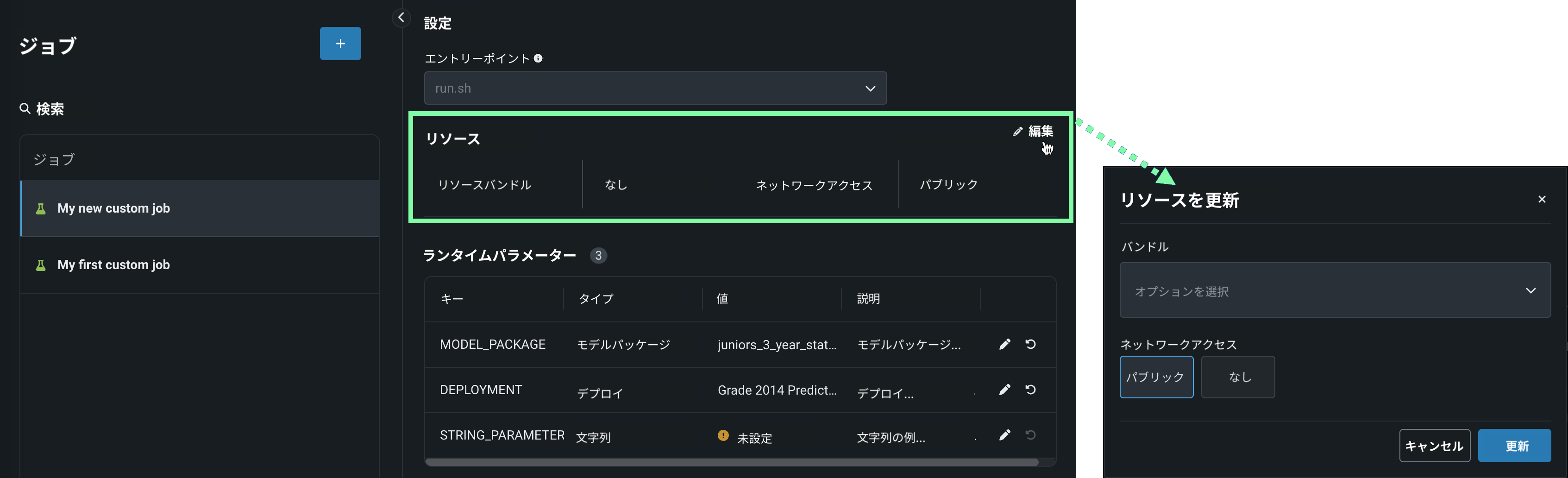 このリリースから、カスタムジョブにリソース設定セクションが含まれています。このセクションでは、カスタムジョブの実行に使用するリソースと、カスタムジョブのエグレストラフィックを設定できます。
