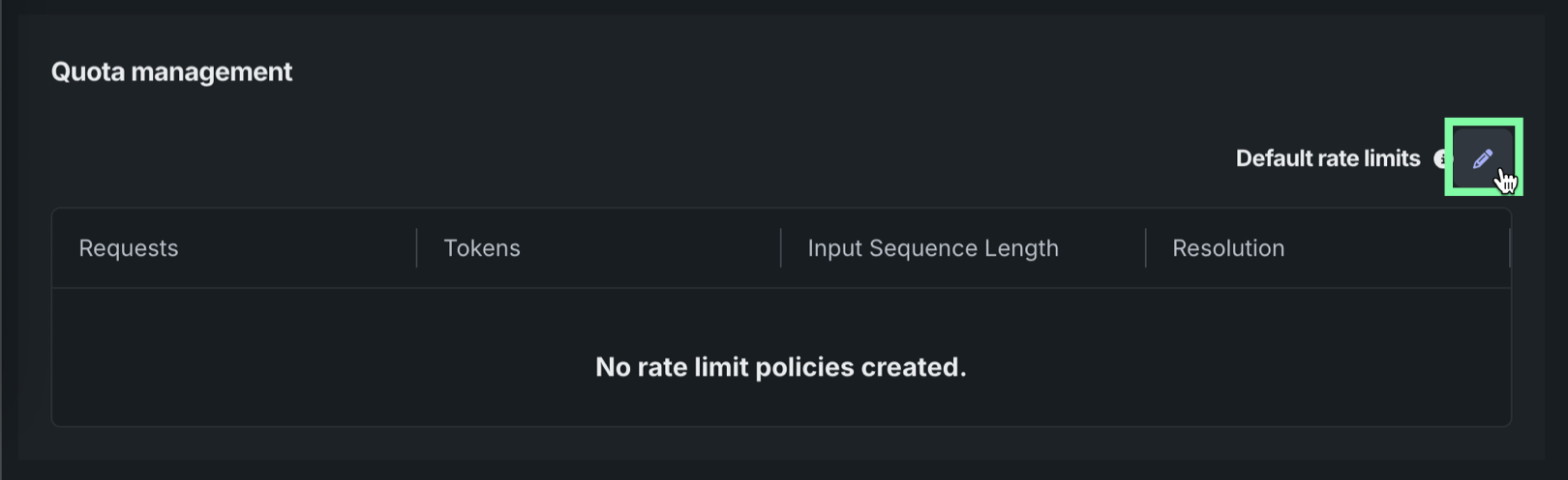 クォータ管理セクションで、 をクリックし、デプロイのクォータ(レート制限)設定を変更します。