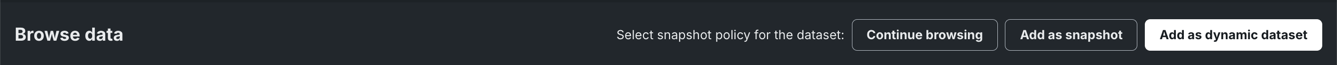ユースケースに追加をクリックしてから、動的データ(動的データセットとして追加)またはデータセットのスナップショット(スナップショットとして追加)のいずれかを追加して、スナップショットポリシーを選択します。 データを追加せずに戻るには、閲覧を続行をクリックします。