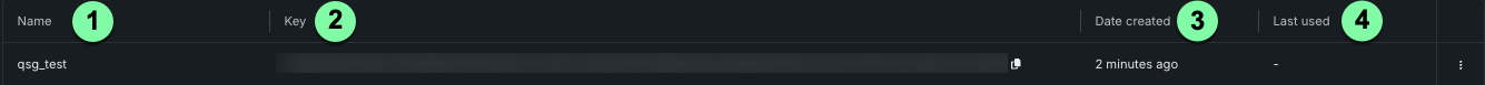 | 3 | Date created | The date the key was created. Newly created and not yet used keys display “—”. |