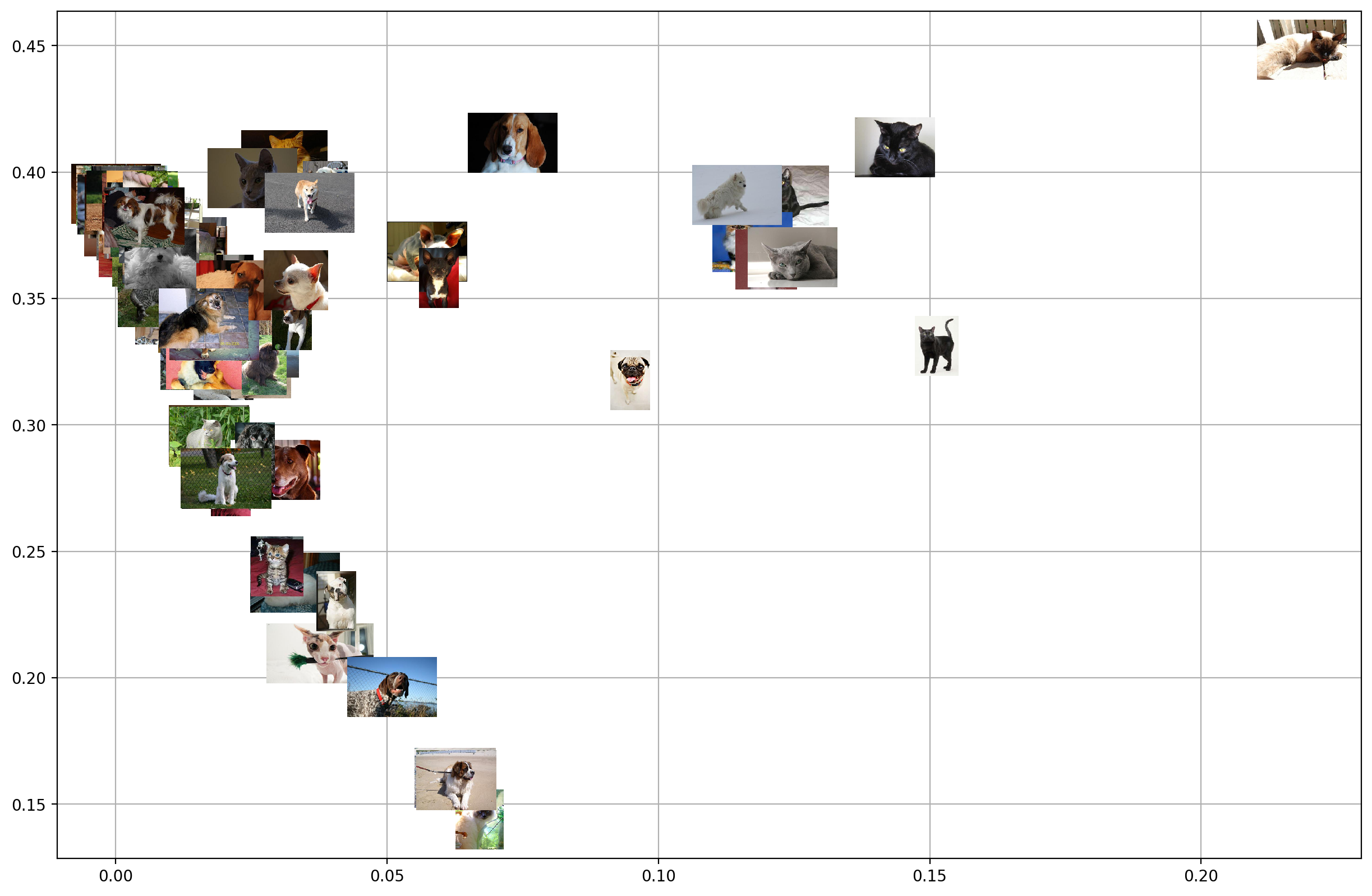 After image embeddings are computed, you can download them from the DataRobot server. The following snippet is an example of how to get the embeddings for a model and plot them.