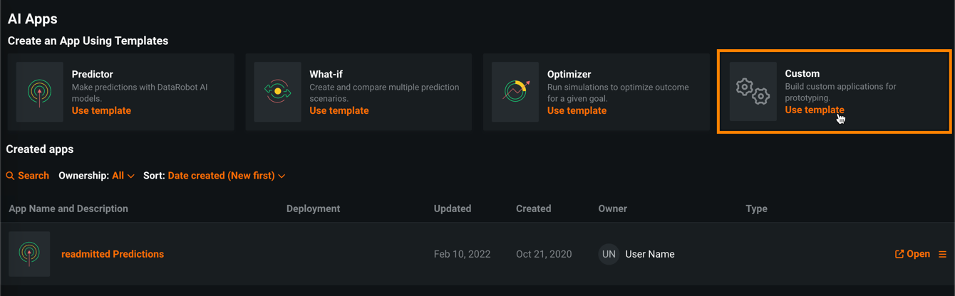 Custom application upload is a premium feature. Contact your DataRobot representative or administrator for information on enabling the feature.