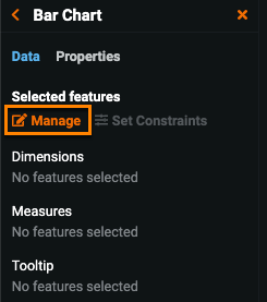 | 3 | Dimensions / Measures | Displays the current feature selections for dimensions and measures. Click the pencil icon to change the display name of the feature in the widget. |