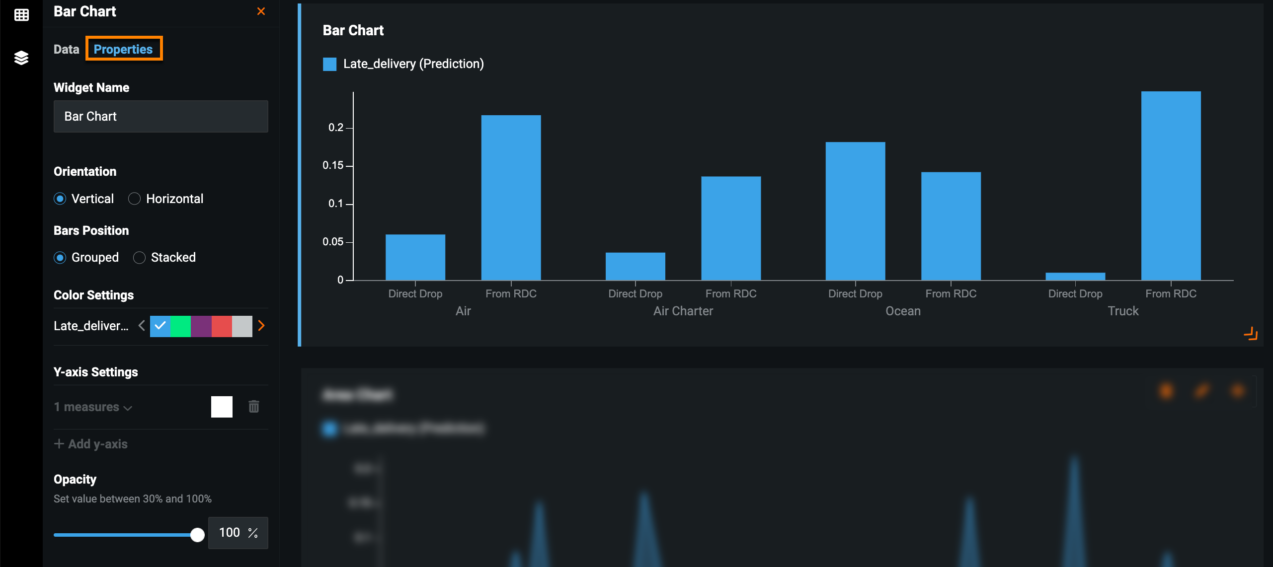 | Area | Displays an Area chart for the selected features—useful for visualizing the composition of data. |